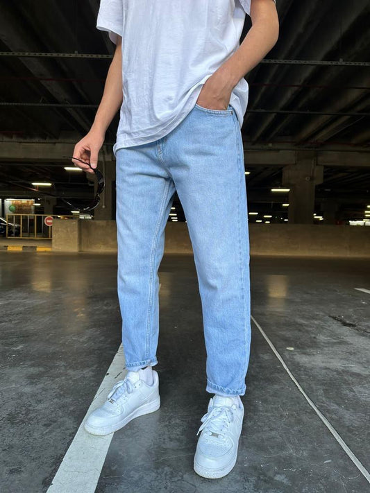 بنطرون جينز نيلي نسائي بجيب على الاطراف ,قالب طبيعي