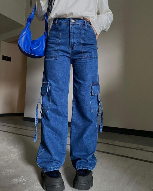 بنطرون جينز نيلي بخطوط جانبية ,قالب طبيعي