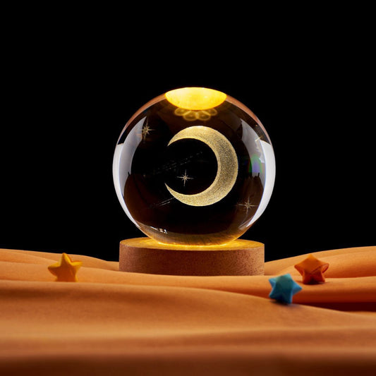 (LED كرة زجاجية قمر ورجل فضاء (قاعدة خشب +اضائة