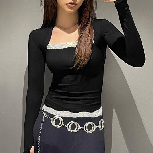 بدي نسائي اسود فيونكة دانتيل ابيض
