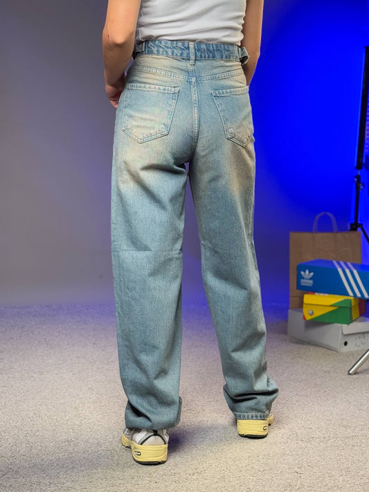 بنطرون جينز ازرق فتحه من الاسفل , قالب طبيعي