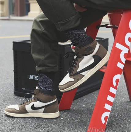 حذاء جوردن ترايفس سكوت قهوائي وابيض ,قالب طبيعي
