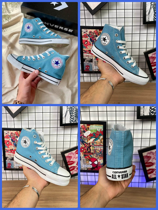 حذاء كونفرس كعب عالي سمائي وتركوازي ,قالب طبيعي (القياسات بين 36>40)