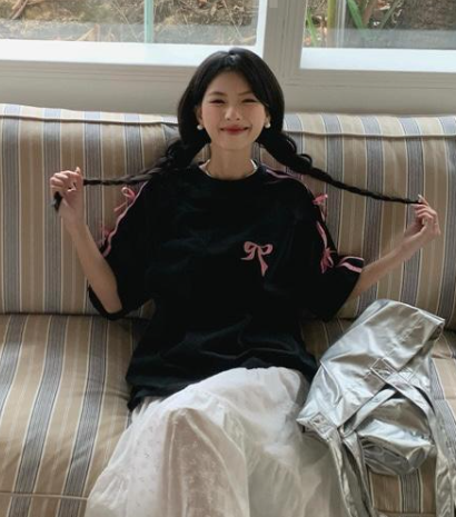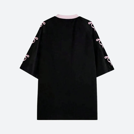 تيشيرت بناتي فيونكة وشريط وردي لون اسود , قالب صغير
