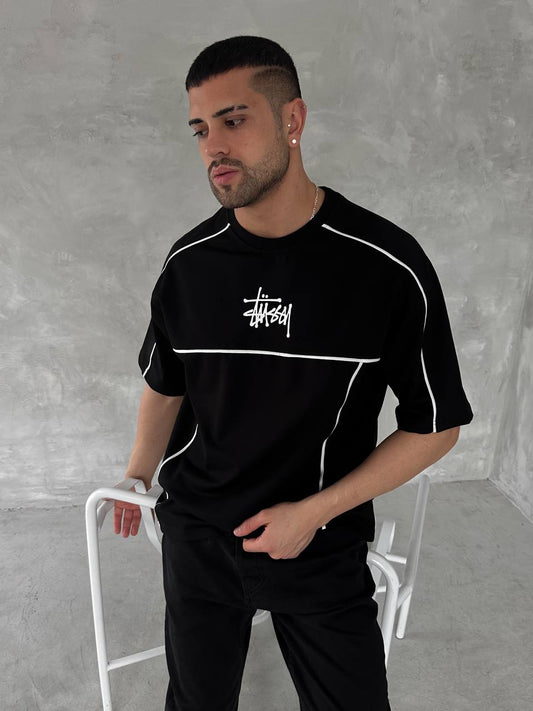 تيشيرت ستوسي اسود خط ابيض , قالب كبير