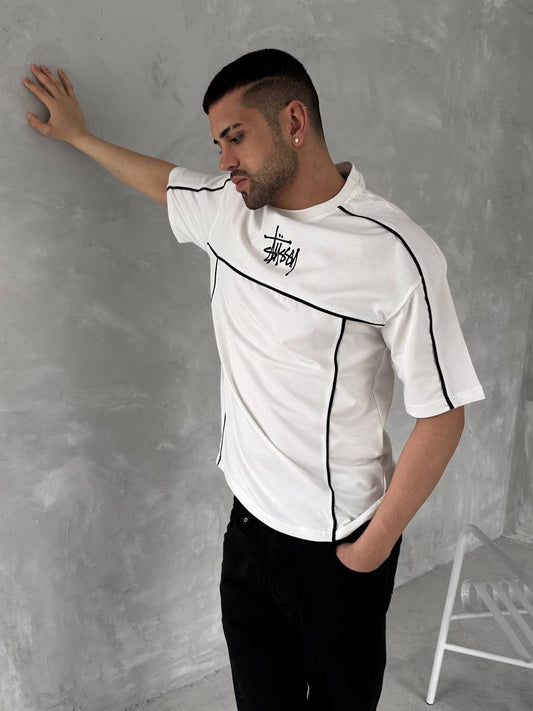 تيشيرت ستوسي ابيض خط اسود , قالب كبير