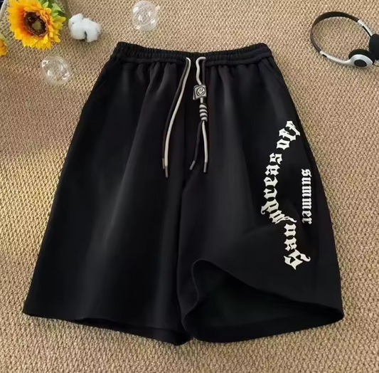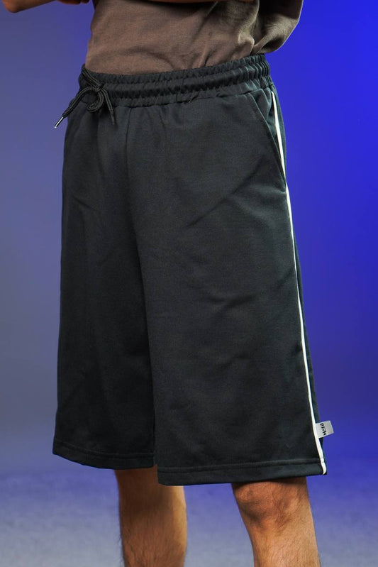 شورت اسود سادة بخط ابيض , قالب طبيعي