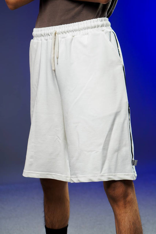 شورت ابيض سادة بخط اسود , قالب طبيعي