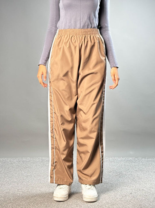 بجامة رياضية قهوائي خطوط جانبية خصر لاستيك , مطري خفيف , قالب طبيعي ✅