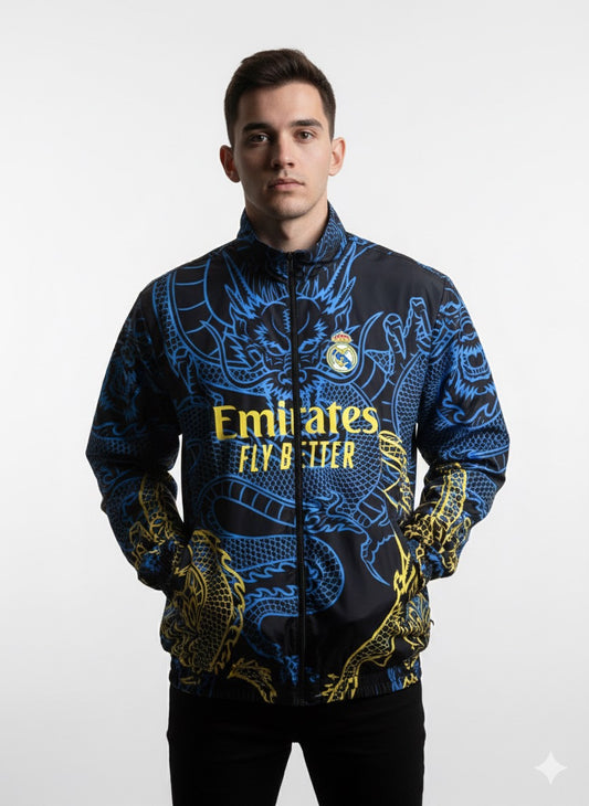 جاكيت ريال مدريد اسود وازرق مطري خفيف ✅