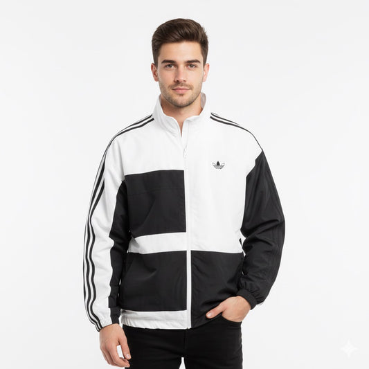 جاكيت اديداس اسود وابيض ,مطري خفيف ✅