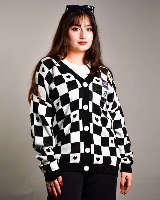 سترة لون اسود منقوشة فضفاضة