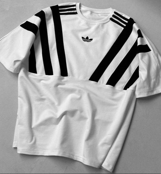 تيشيرت اديداس ابيض خطوط اسود , قالب كبير