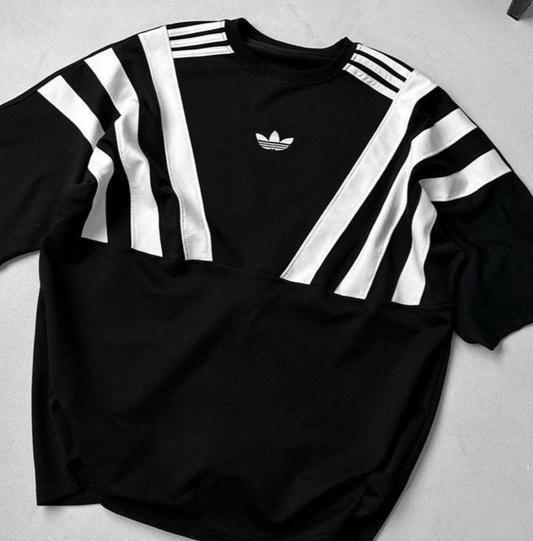 تيشيرت اديداس اسود خطوط ابيض , قالب كبير