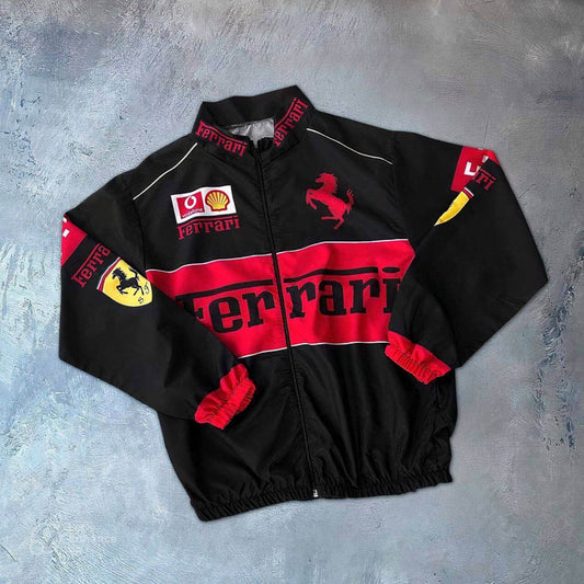 جاكيت فيراري اسود واحمر مطري , مبطن ثخين