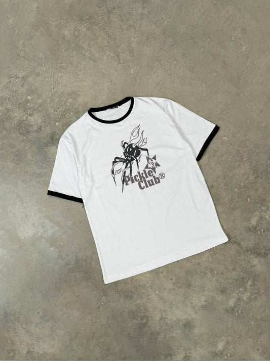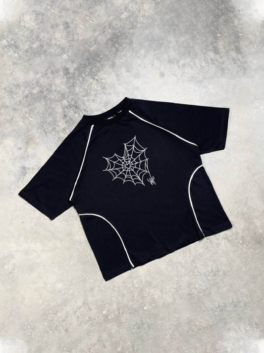 تيشيرت مخطط رجالي نسائي طبعة شبكة عنكبوت على شكل قلب