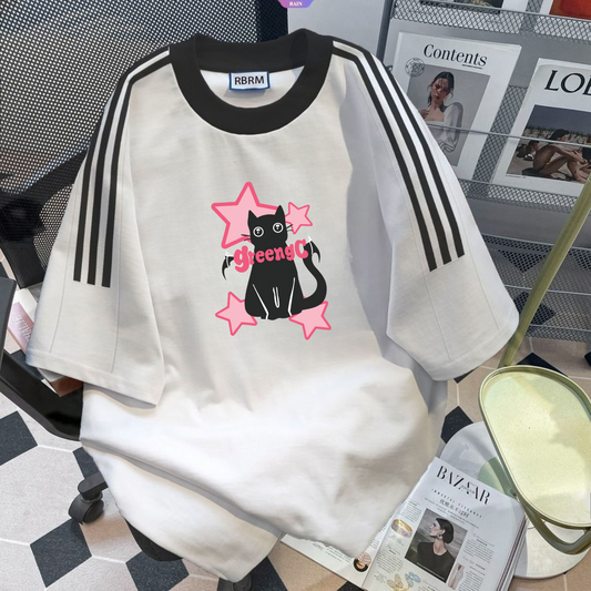 تيشيرت قط ونجوم بناتي , مخطط قالب كبير