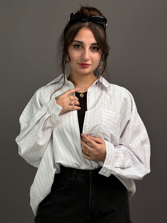 قميص نسائي مخطط مع كيمونة ,قالب طبيعي