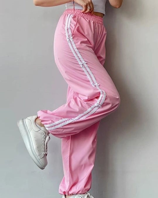 بجامة خطوط جانبية مع فيونكة , لاستيكة ,قماش مطري