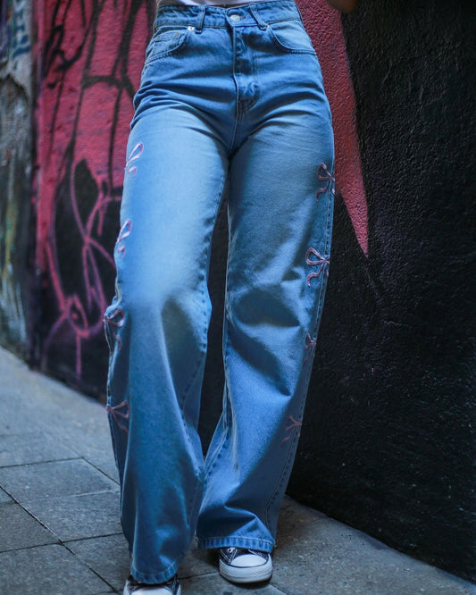 بنطرون جينز ازرق فيونكات نسائي ,قالب طبيعي