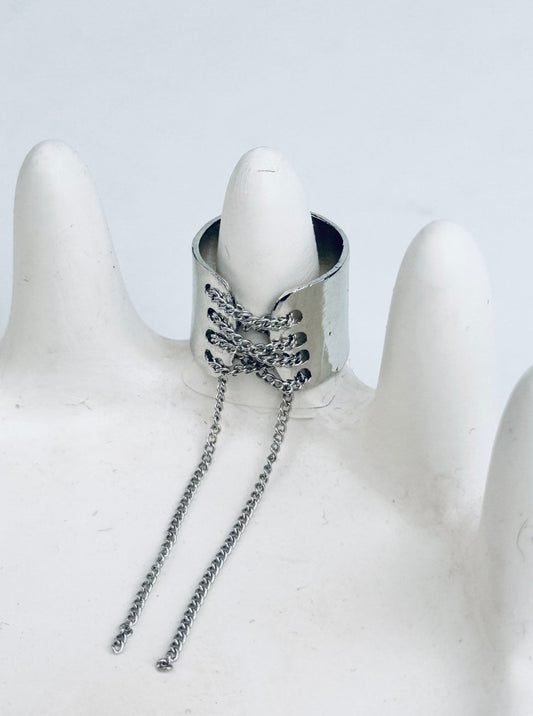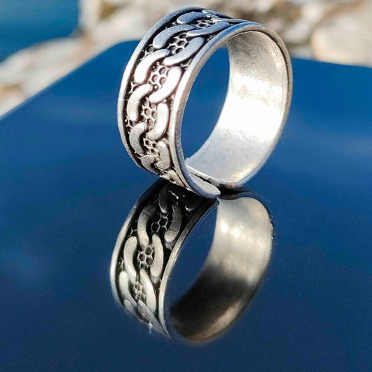 محبس مزخرف شكل سلسلة فضي , قابل للتكبير والتصغير