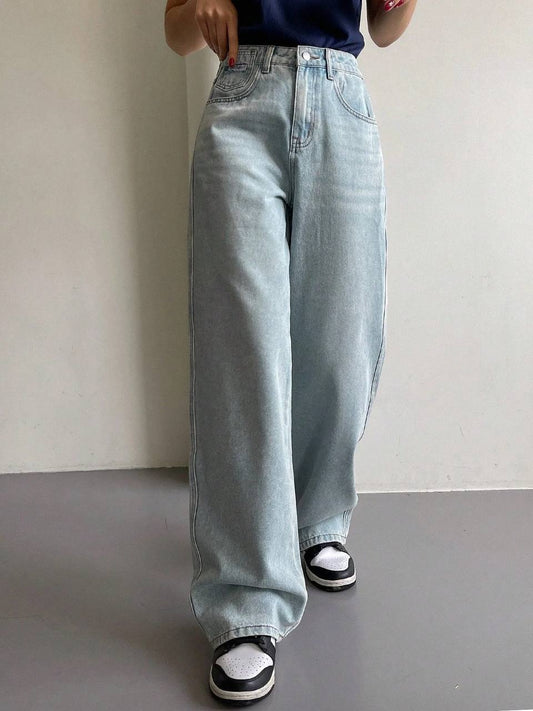 بنطرون جينز سمائي عالي الخصر نسائي, قالب طبيعي