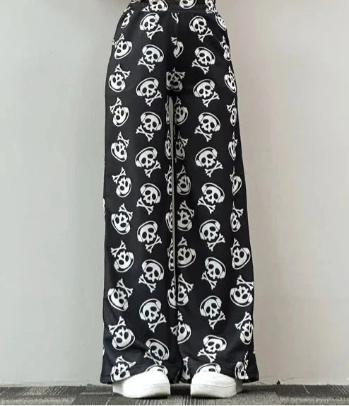 بجامة بطبعة جمجمة سوداء وأرجل واسعة ,قالب طبيعي