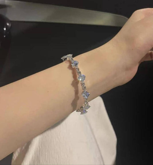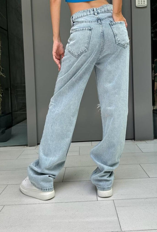 بنطرون جينز ثلجي بخصر مرتفع مطرز نجوم ,قالب طبيعي