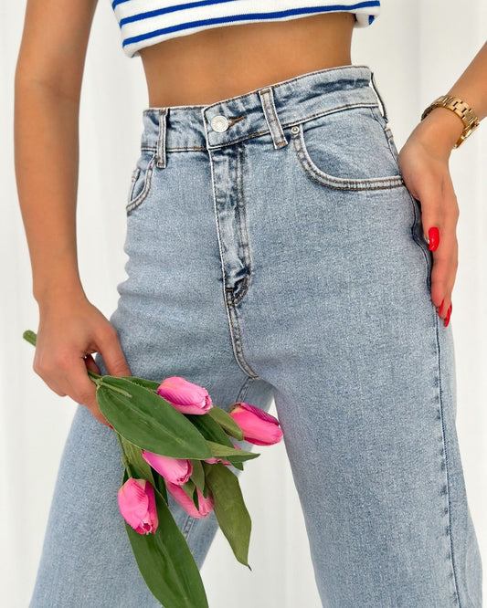 بنطرون جينز ثلجي بخصر عالي وواسع