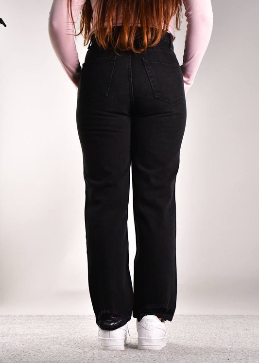 بنطلون جينز بوي فريند مهشم وبخصر عالي اسود ,قالب طبيعي