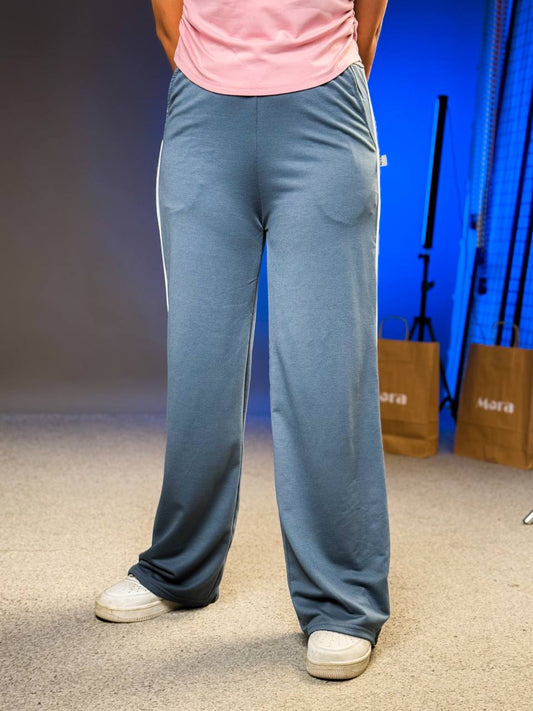 بجامة رصاصي سادة خط جانبي لاستيك من الخصر , قالب طبيعي