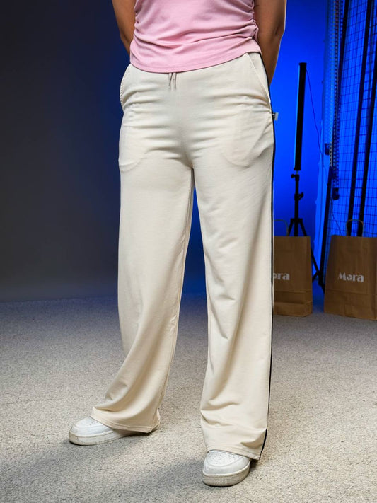 بجامة بيجي سادة خط جانبي لاستيك من الخصر , قالب طبيعي