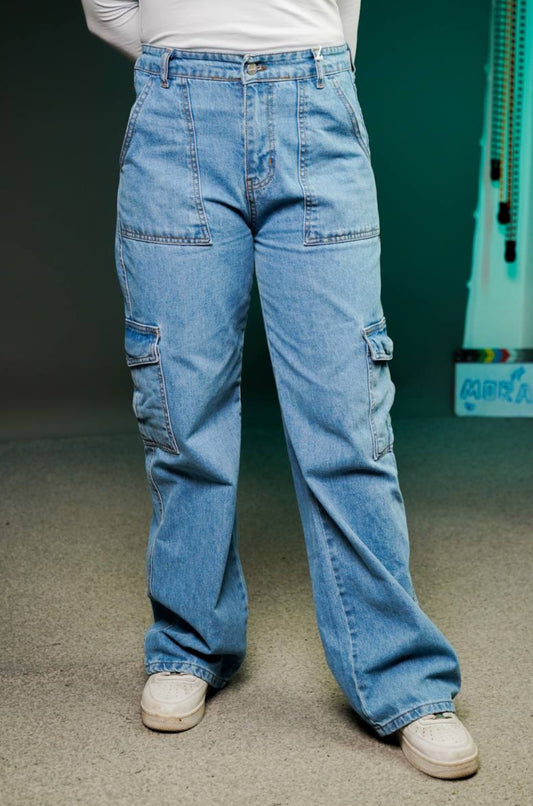 بنطرون جينز نسائي فيونكة جيب من الاسفل فضفاض ثلجي