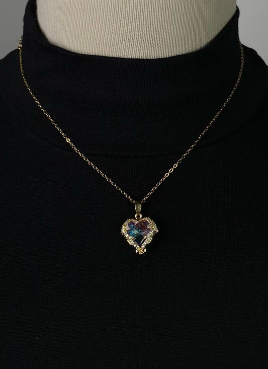 قلادة قلب مزغرف مع فص