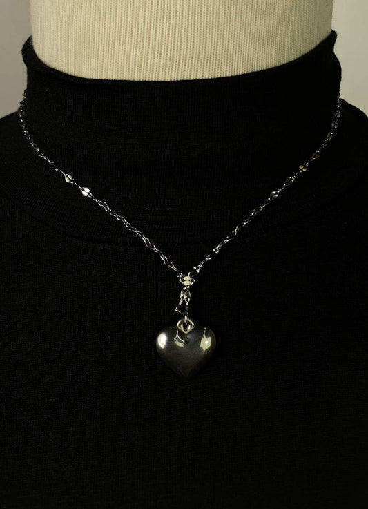 قلادة قلب فضي ممتلئ
