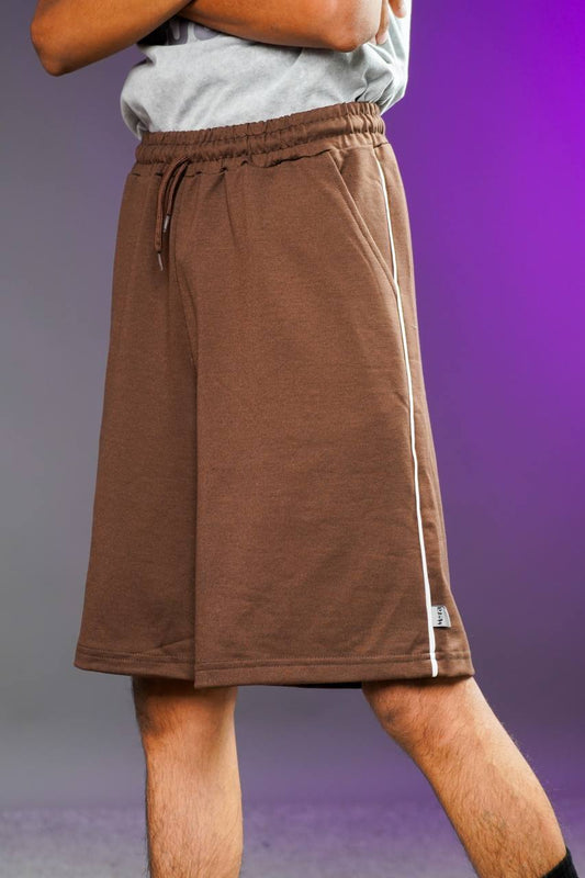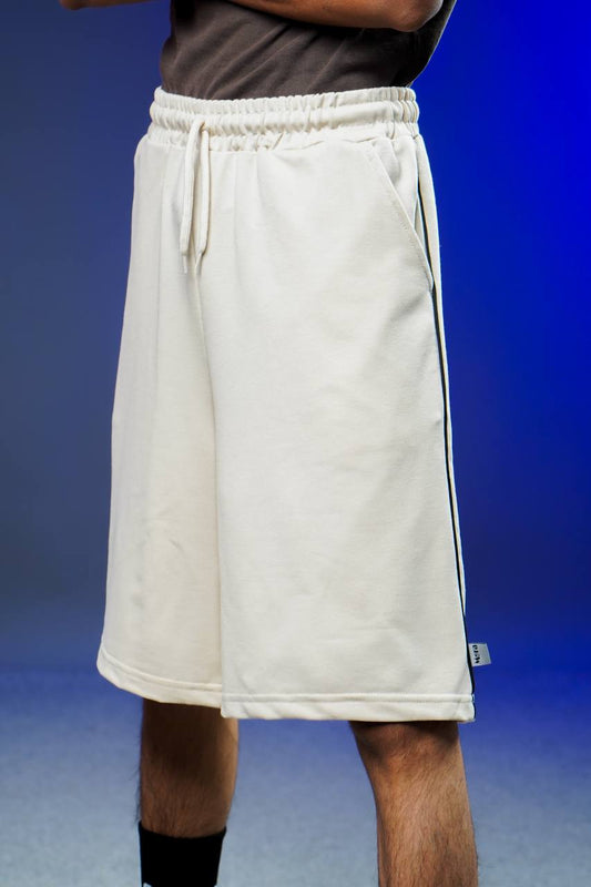 شورت حليبي سادة بخط اسود , قالب طبيعي