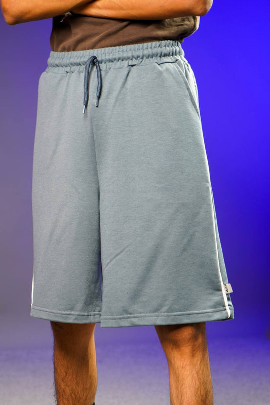 شورت رصاصي سادة بخط ابيض , قالب طبيعي