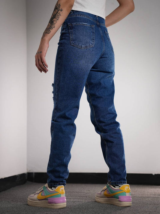 بنطرون جينز بشقوق نسائي ازرق , قالب طبيعي