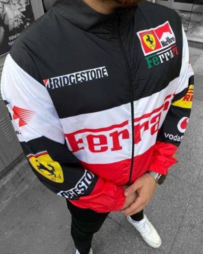 جاكيت فيراري لون اسود قماش مطري خفيف