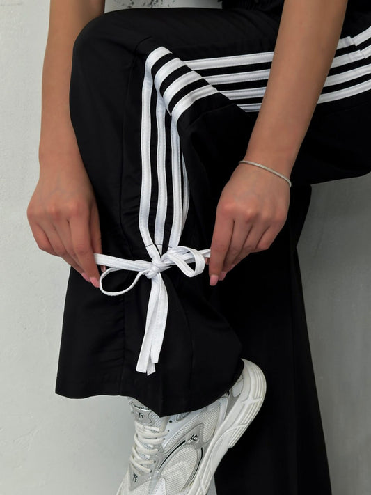 بجامة بأشرطة جانبية لون اسود , قالب طبيعي