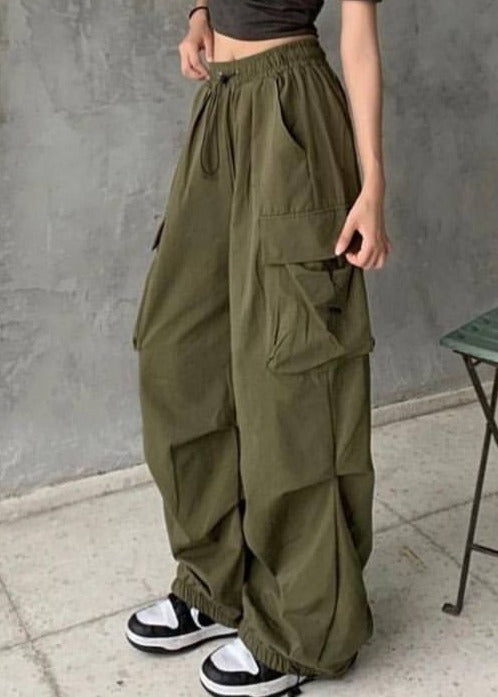 بنطرون كاركو زيتوني فضفاض واسع , لاستيكة