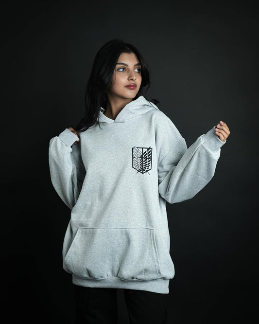 هودي هجوم العمالقة رصاصي وابيض , قالب كبير