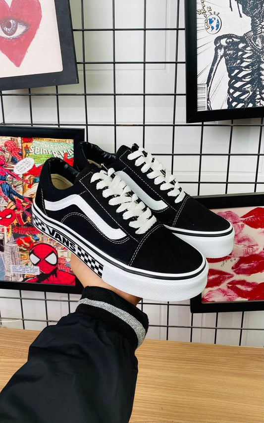 حذاء فانس اسود وابيض مربعات ,قالب طبيعي (القياسات بين 36>40)