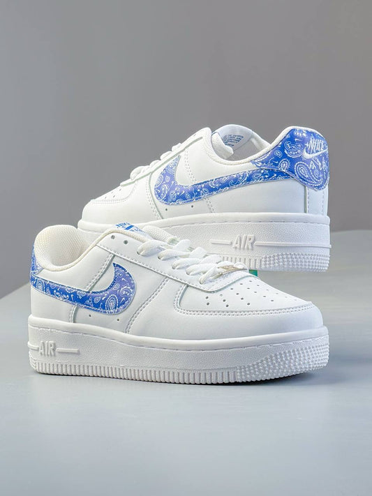 حذاء نايك اير فورس ابيض وازرق ,قالب طبيعي