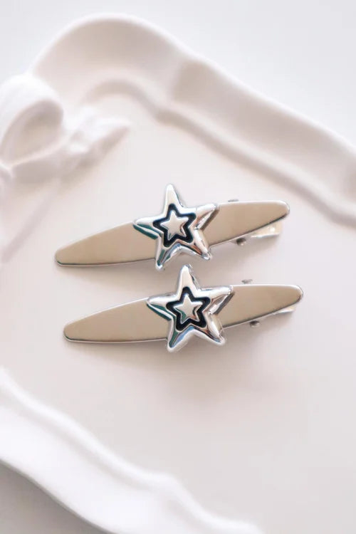 كماشات شعر ستيل فضية قلب ونجمة (السيت 2 قطعة)