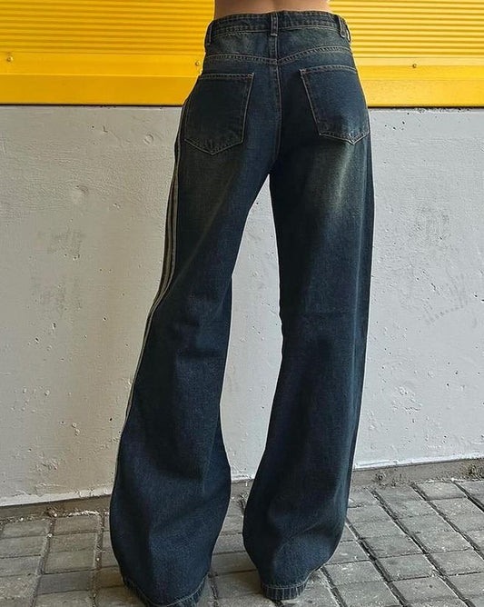 بنطرون جينز نيلي بخطوط جانبية ,قالب طبيعي