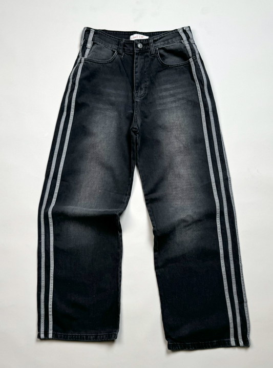 بنطرون جينز اسود بخطوط جانبية ,قالب طبيعي