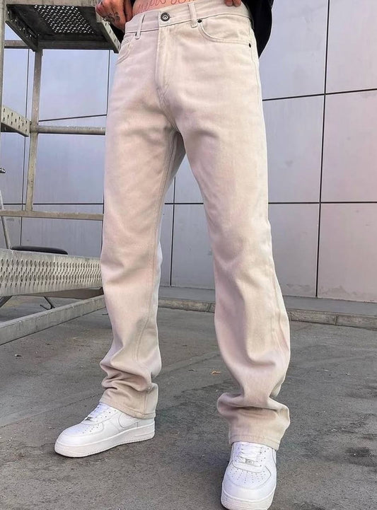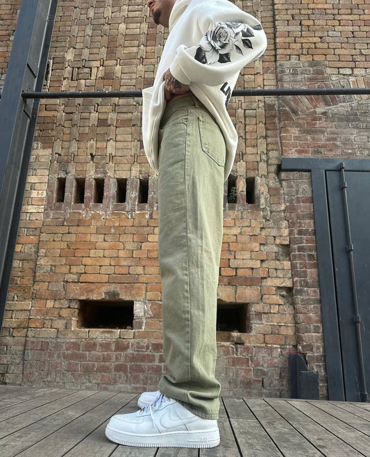 بنطرون جينز رجالي زيتوني فاتح , قالب كبير