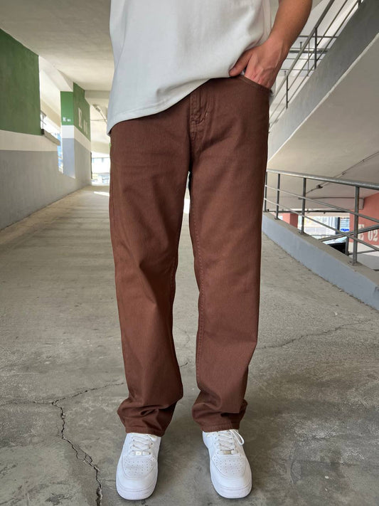 بنطرون جينز رجالي قهوائي , قالب كبير