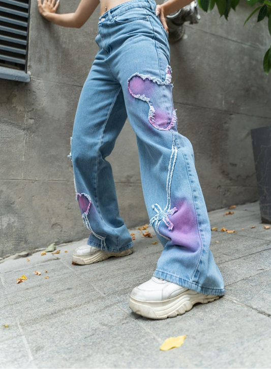 بنطرون جينز سمائي فراشة ,قالب طبيعي